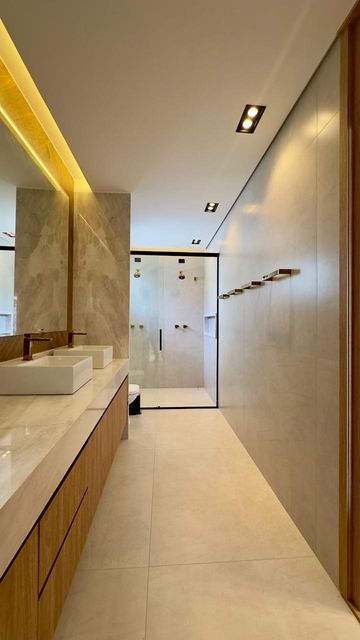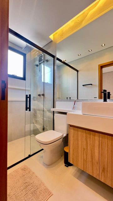 São 3 suítes climatizadas, incluindo uma suíte master com closet e um banheiro amplo que traduz conforto e privacidade.
