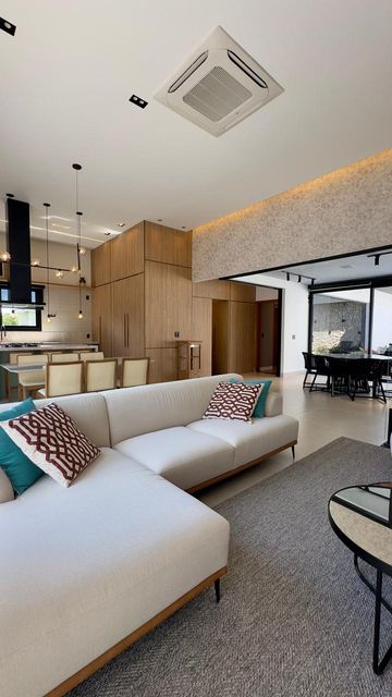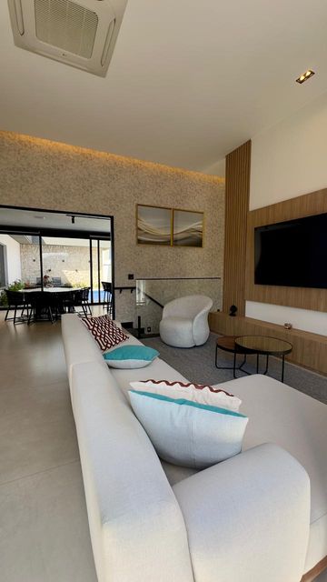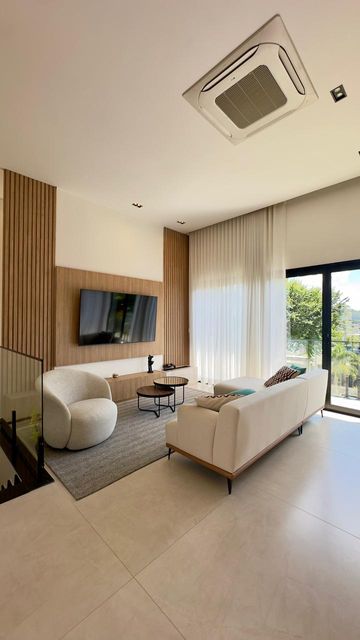 O living integrado é um verdadeiro convite para viver bem: espaçoso, elegante, com ar-condicionado central e conexão perfeita com a cozinha e a área gourmet.